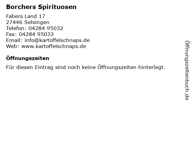 | Telefonnummer Borchers Spirituosen in Selsingen (04284 95032) anrufen | |