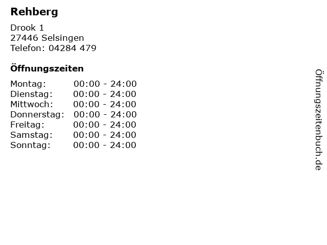 | Öffnungszeiten Rehberg in Selsingen anzeigen | |
