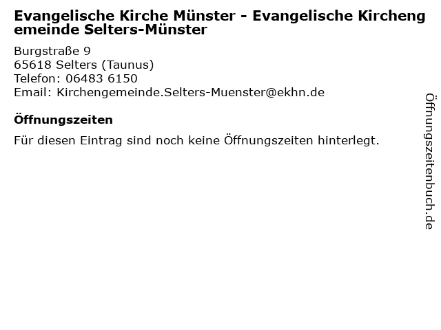 | Evangelische Kirche Münster - Evangelische Kirchengemeinde Selters-Münster anrufen | |