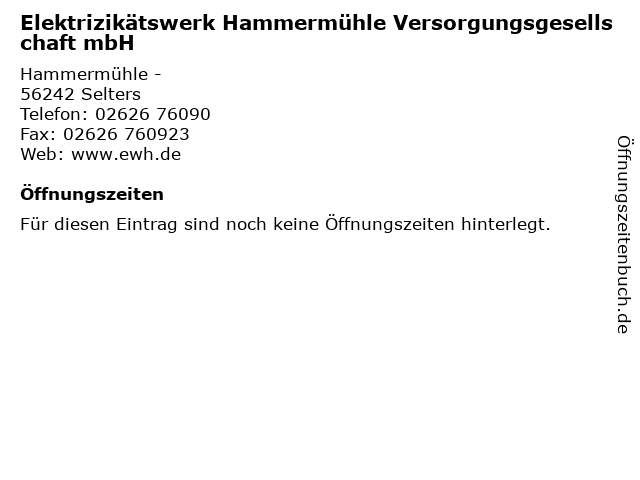 | Elektrizikätswerk Hammermühle Versorgungsgesellschaft mbH anrufen | |