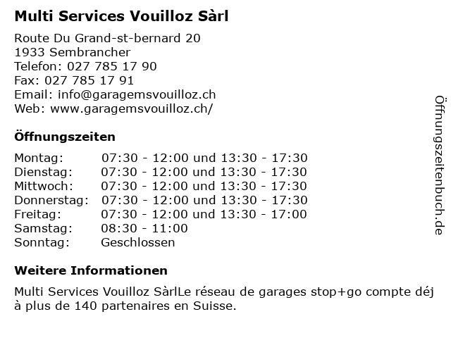 Branchen & Suchbegriffe zu Multi Services Vouilloz Sàrl:autohändler, autovermietung, gerätereparaturdienst, multi, services, sàrl, tankstelle mit abschleppdienst, vouilloz |