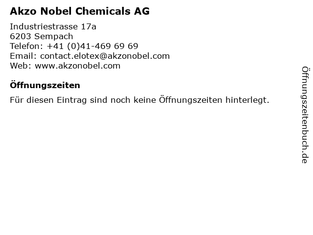 | Öffnungszeiten Akzo Nobel Chemicals AG in Sempach anzeigen | |