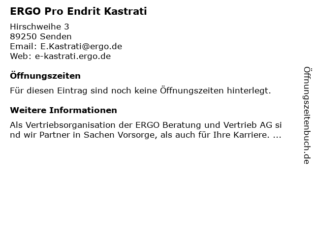 | Öffnungszeiten ERGO Pro Endrit Kastrati in Senden anzeigen | |