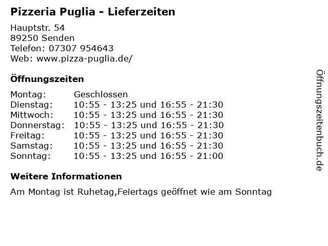 Branchen & Suchbegriffe zu Pizzeria Puglia - Lieferzeiten:lieferzeiten, pizzeria, puglia |