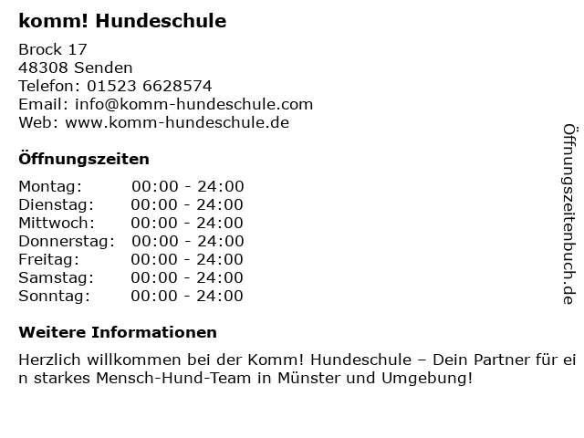 | Öffnungszeiten komm! Hundeschule in Senden anzeigen | |