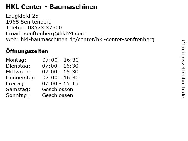 | Öffnungszeiten HKL Center - Baumaschinen in Senftenberg anzeigen | |