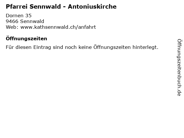 | Öffnungszeiten Pfarrei Sennwald - Antoniuskirche in Sennwald anzeigen | |