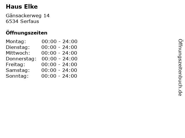 | Öffnungszeiten Haus Elke in Serfaus anzeigen | |