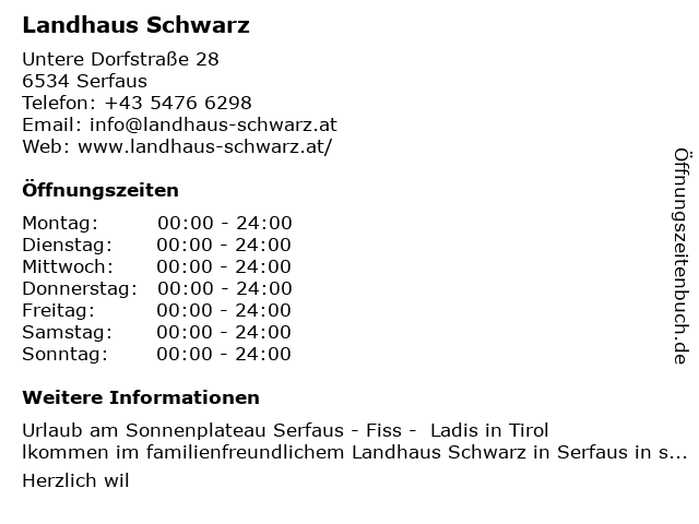 | Öffnungszeiten Landhaus Schwarz in Serfaus anzeigen | |