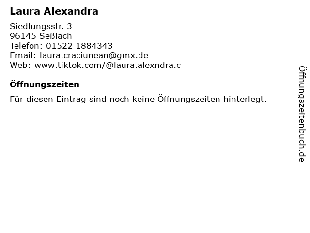 | Öffnungszeiten Laura Alexandra in Seßlach anzeigen | |