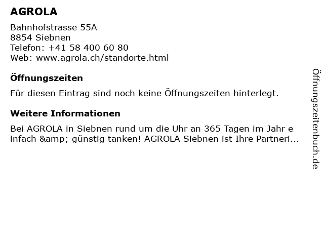 | Öffnungszeiten AGROLA in Siebnen anzeigen | |