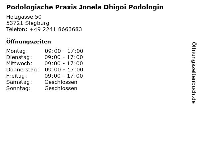 2 Anja Katharina Wagner Podologische Praxis FussCoach (Entfernung: 1,95 km) Kaldauer Straße 88 c, 53721 Siegburg 5 6 Praxis für podologische Therapie Hötzel, Patricia Hötzel, Thomas Hötzel (Entfernung: 13,93 km) Frankfurter Str. 602, 51145 Köln |