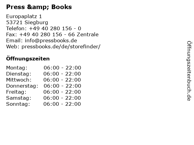| Öffnungszeiten Press & Books in Siegburg anzeigen | |