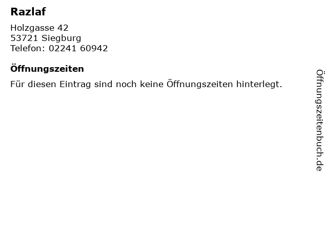 | Öffnungszeiten Razlaf in Siegburg anzeigen | |