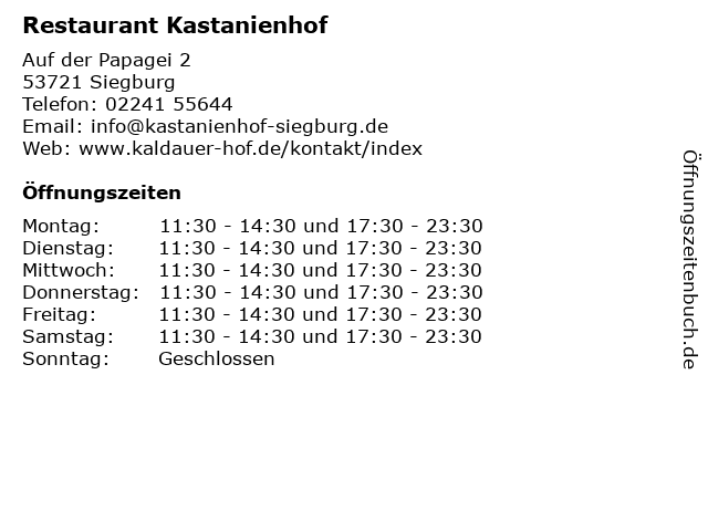 | Öffnungszeiten Restaurant Kastanienhof in Siegburg anzeigen | |