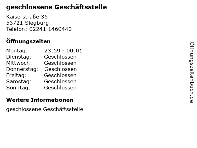 Öffnungszeiten geschlossene Geschäftsstelle in Siegburg anzeigen