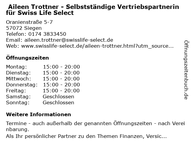 Branchen & Suchbegriffe zu Aileen Trottner - Selbstständige Vertriebspartnerin für Swiss Life Select:aileen, berufshaftpflichtversicherung, berufsunfähigkeitsversicherung, finanzplanung, gebäude- und hausratsversicherung, investmentservice, lebensversicherung, life, mietrechtsschutzversicherung, pflegeversicherung, selbstständige, select, swiss, trottner, versicherungsberater, vertriebspartnerin |