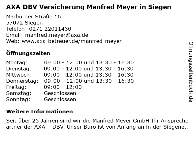 Branchen & Suchbegriffe zu AXA DBV Versicherung Manfred Meyer in Siegen:altersvorsorge, autoversicherung, axa, berufshaftpflichtversicherung, dbv, gebäude- und hausratsversicherung, kfz-versicherung (motorrad), lebensversicherung, manfred, meyer, siegen, unternehmen für versicherungsfachfragen, versicherung, zahnmedizinische versicherung |