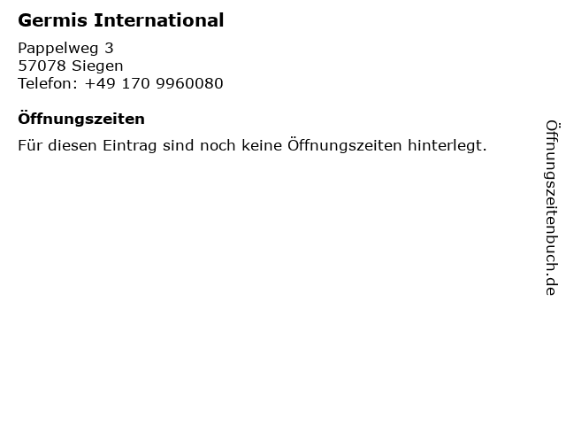 | Öffnungszeiten Germis International in Siegen anzeigen | |