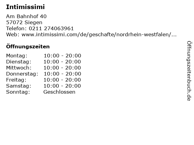 | Telefonnummer Intimissimi in Siegen (0211 274063961) anrufen | |