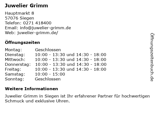 Öffnungszeiten Juwelier Grimm in Siegen anzeigen | |