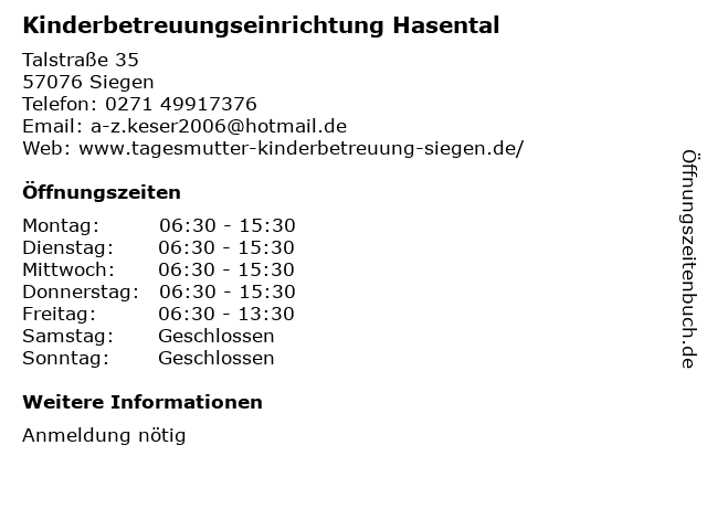 1 5 Kinderbetreuungseinrichtung KiTS Kleine Wunder (Entfernung: 9,07 km) Eggersten Ring 6, 57223 Kreuztal 6 |