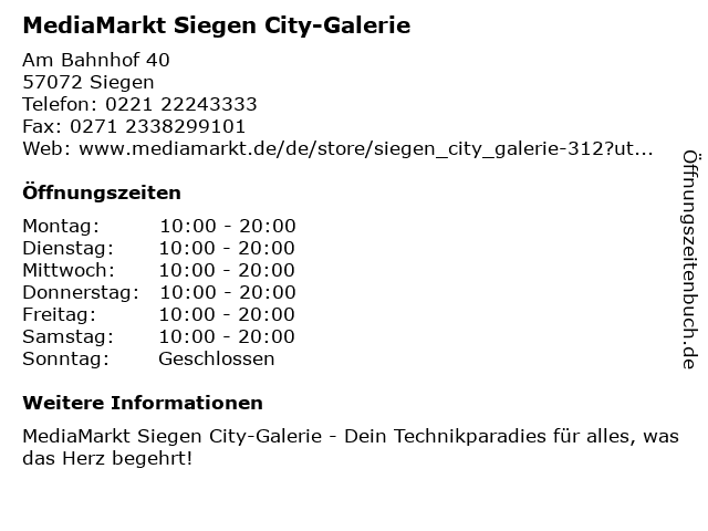 Branchen & Suchbegriffe zu MediaMarkt Siegen City-Galerie:city, galerie, mediamarkt, siegen |