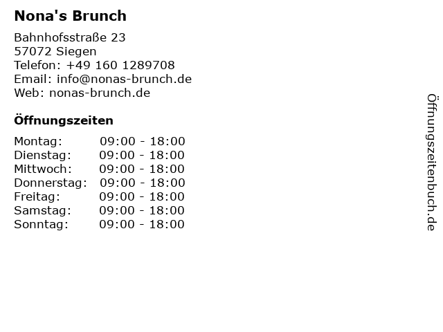 | Öffnungszeiten Nona's Brunch in Siegen anzeigen | |