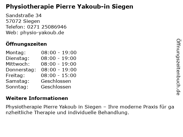 Branchen & Suchbegriffe zu Physiotherapie Pierre Yakoub-in Siegen:massagezentrum, physiotherapie, pierre, siegen, yakoub |
