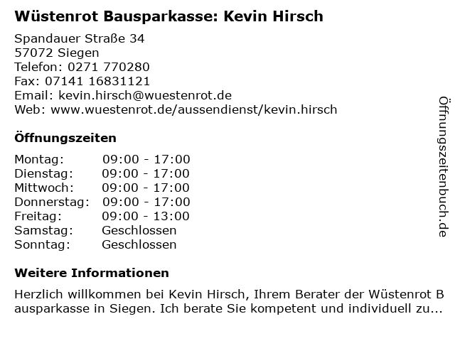 Branchen & Suchbegriffe zu Wüstenrot Bausparkasse: Kevin Hirsch:bausparkasse, hirsch, kevin, wüstenrot |