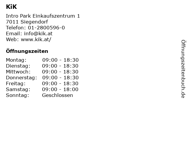 | Öffnungszeiten KiK in Siegendorf anzeigen | |