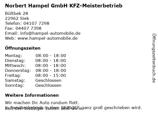 Branchen & Suchbegriffe zu Norbert Hampel GmbH KFZ-Meisterbetrieb:hampel, kfz, meisterbetrieb, norbert |