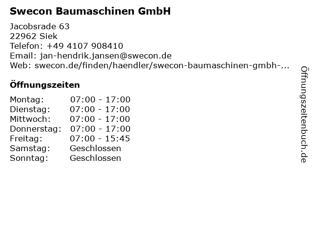 | Öffnungszeiten Swecon Baumaschinen GmbH in Siek anzeigen | |