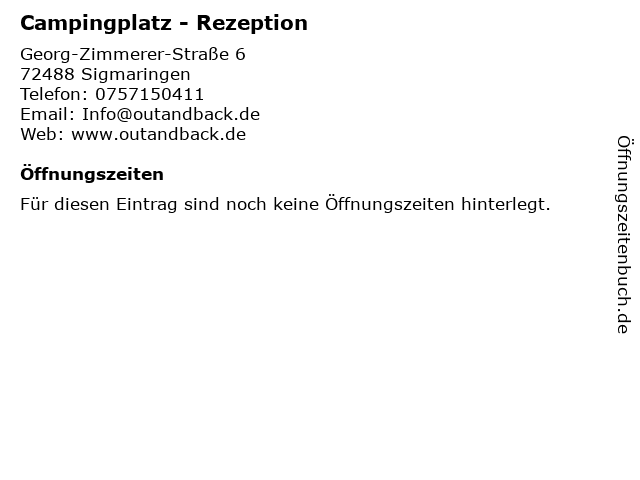 | Öffnungszeiten Campingplatz - Rezeption in Sigmaringen anzeigen | |