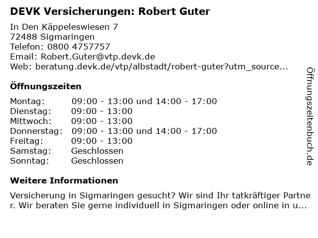 1 DEVK Versicherung: Kerstin Dangelmeier (Berater*in ausgeschieden) (Entfernung: 0,01 km) In Den Käppeleswiesen 7, 72488 Sigmaringen 2 Bosch Robert, Malergeschäft Farbe u. Wohnraumgestaltung (Entfernung: 6,78 km) Gehrenweg 7, 72488 Sigmaringen 6 |