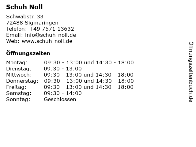 | Öffnungszeiten Schuh Noll in Sigmaringen anzeigen | |
