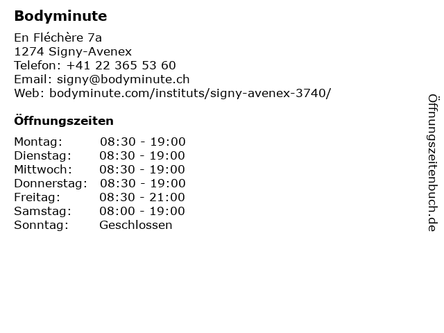 | Öffnungszeiten Bodyminute in Signy-Avenex anzeigen | |