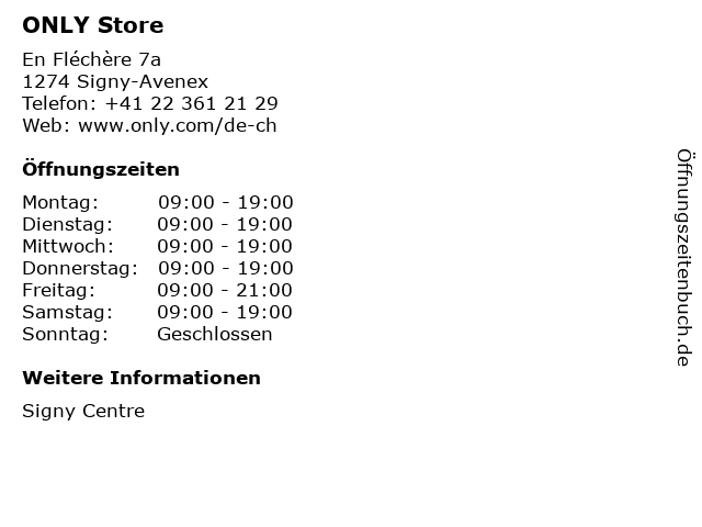| Öffnungszeiten ONLY Store in Signy-Avenex anzeigen | |