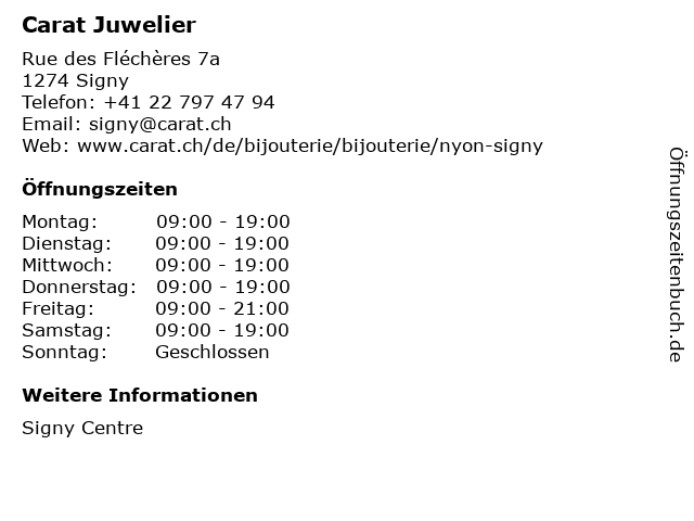 | Öffnungszeiten Carat Juwelier in Signy anzeigen | |