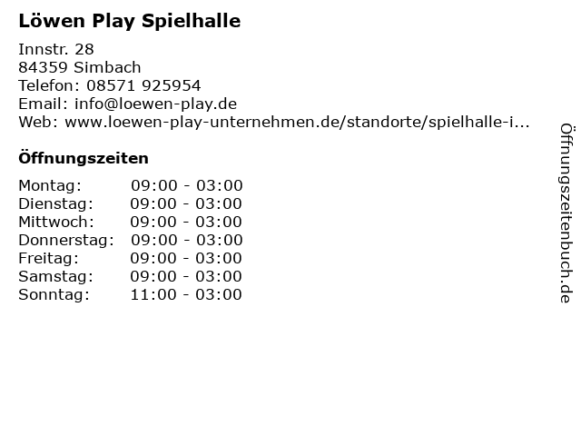 | Öffnungszeiten Löwen Play Spielhalle in Simbach anzeigen | |