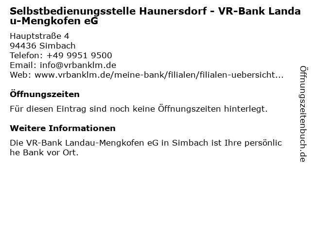 | Selbstbedienungsstelle Haunersdorf - VR-Bank Landau-Mengkofen eG anrufen | |