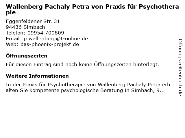 Öffnungszeiten Wallenberg Pachaly Petra von Praxis für Psychotherapie