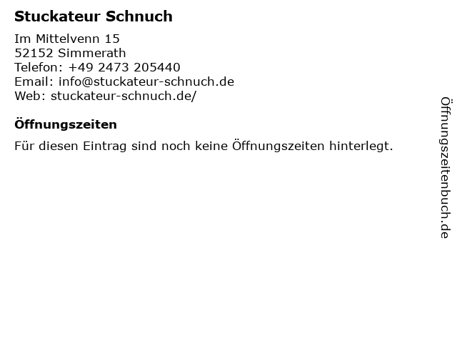 | Öffnungszeiten Stuckateur Schnuch in Simmerath anzeigen | |