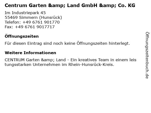 | Centrum Garten & Land GmbH & Co. KG anrufen | |