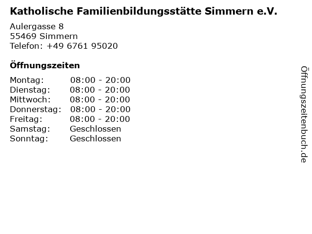 Branchen & Suchbegriffe zu Katholische Familienbildungsstätte Simmern e.V.:e.v., familienbildungsstätte, katholische, simmern, weiterbildung |