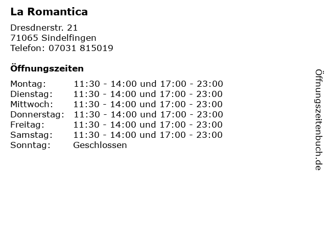 | Öffnungszeiten La Romantica in Sindelfingen anzeigen | |