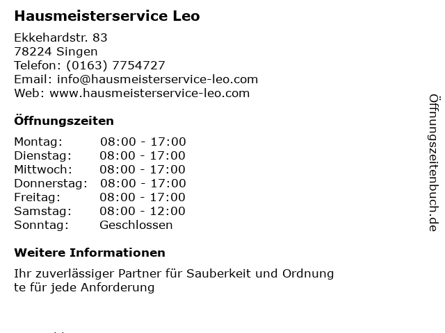 Öffnungszeiten Hausmeisterservice Leo in Singen anzeigen | |