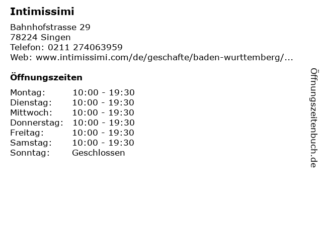 | Öffnungszeiten Intimissimi in Singen anzeigen | |