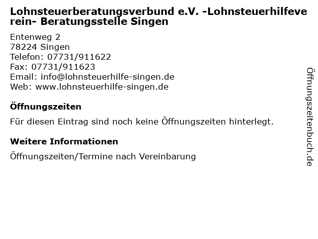 | Lohnsteuerberatungsverbund e.V. -Lohnsteuerhilfeverein- Beratungsstelle Singen anrufen | |