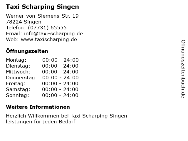 | Öffnungszeiten Taxi Scharping Singen in Singen anzeigen | |